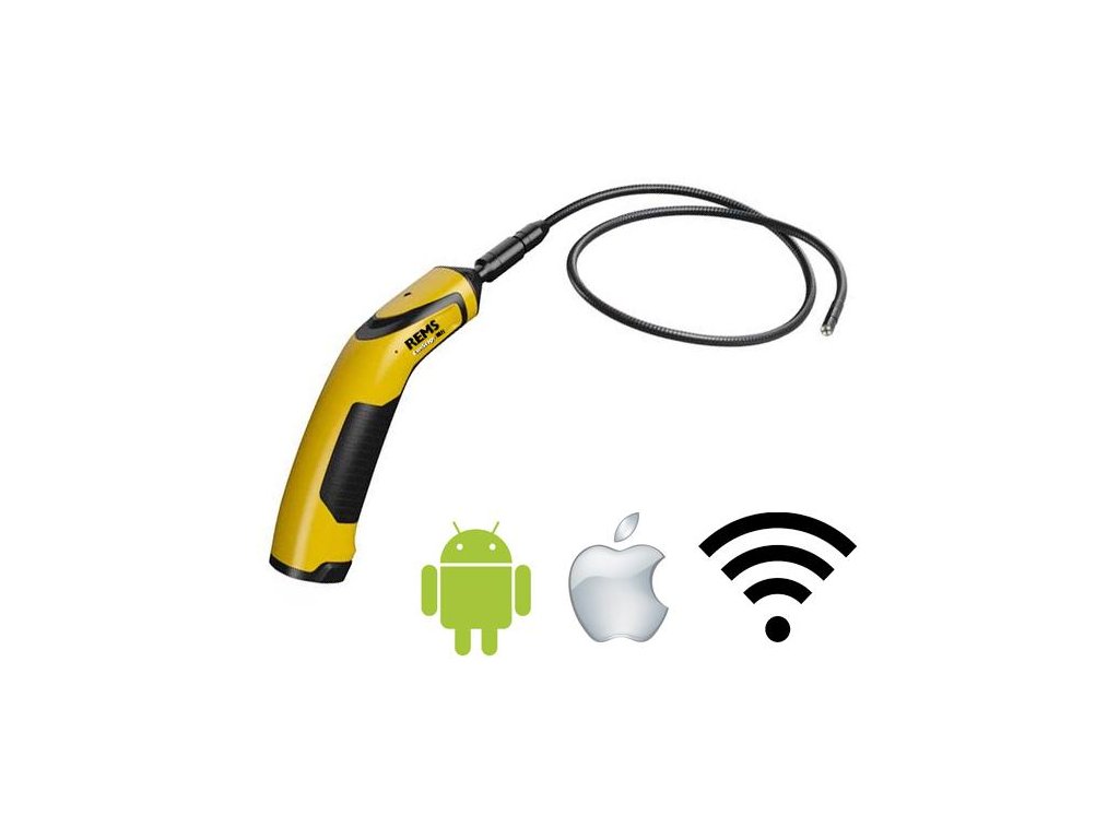 REMS CamScope Wi-Fi Set. Mobilní, příruční kamera-endoskop s Wi-Fi přenosovým standardem. K nákladově výhodné inspekci a analýze škod těžko přístupných míst jako jsou dutiny, šachty, potrubí aj. Bezdrátový přenos obrázků a videí na smartphony/tablety s operačními systémy Android a iOS*. Kontrolní jednotka se 4 bateriemi 1,5 V, AA, LR6. V pevném kufru. Volitelně se sadou kamery a kabelu 4,5-1, sadou kamery a kabelu 9-1 nebo sadou kamery a kabelu 16-1.