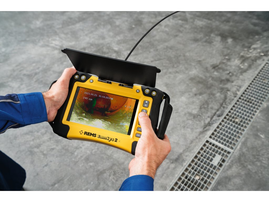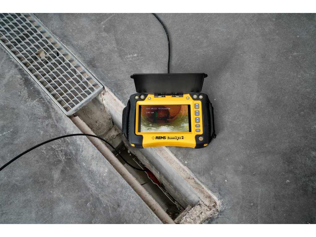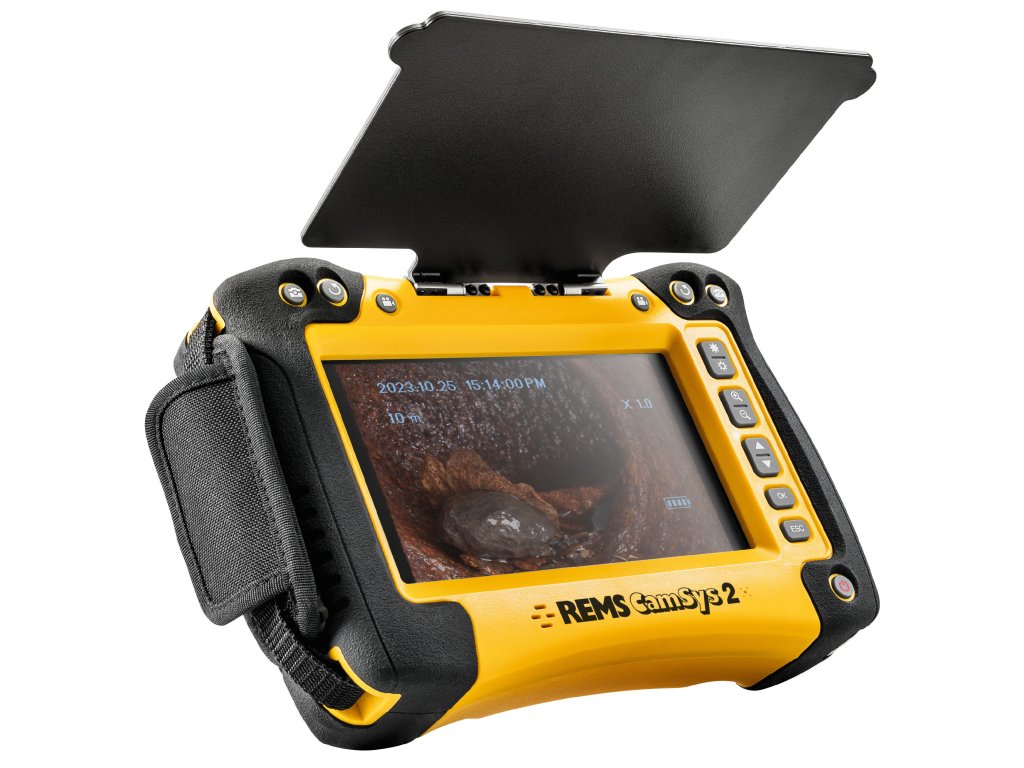 REMS CamSys 2 – vynikající snímky a videa z trubek a kanálů. Záznam zvuku. Samonivelační kamera. Vysílač pro detekci kamerových hlav. Zásuvka pro SD kartu. Elektronické počítání metrů. Akumulátorový a síťový provoz.