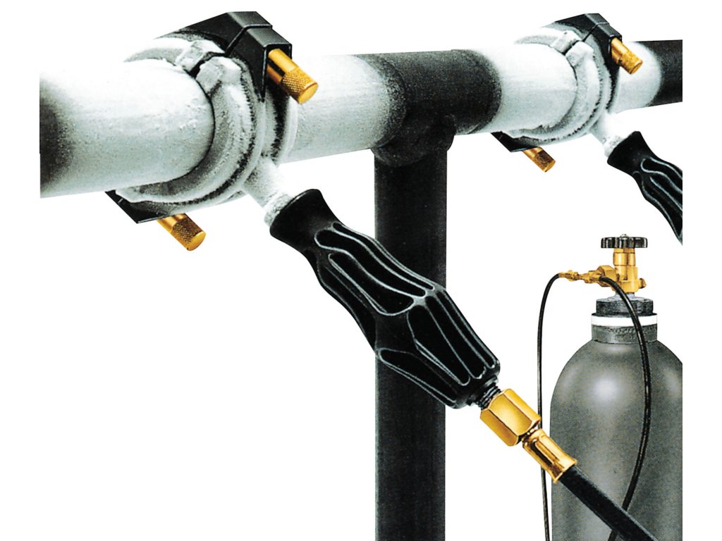 Zmrazovací manžety naléhávající přímo na trubku a přívod zmrazovacího média přímo na trubku zaručuji extrémně krátkou zmrazovací dobu a nízkou spotřebu mrazicího média. Zmrazovat lze jednostranně i oboustranně, s přídavnými T-rozdělovači lze připojit i další zmrazovací manžety.