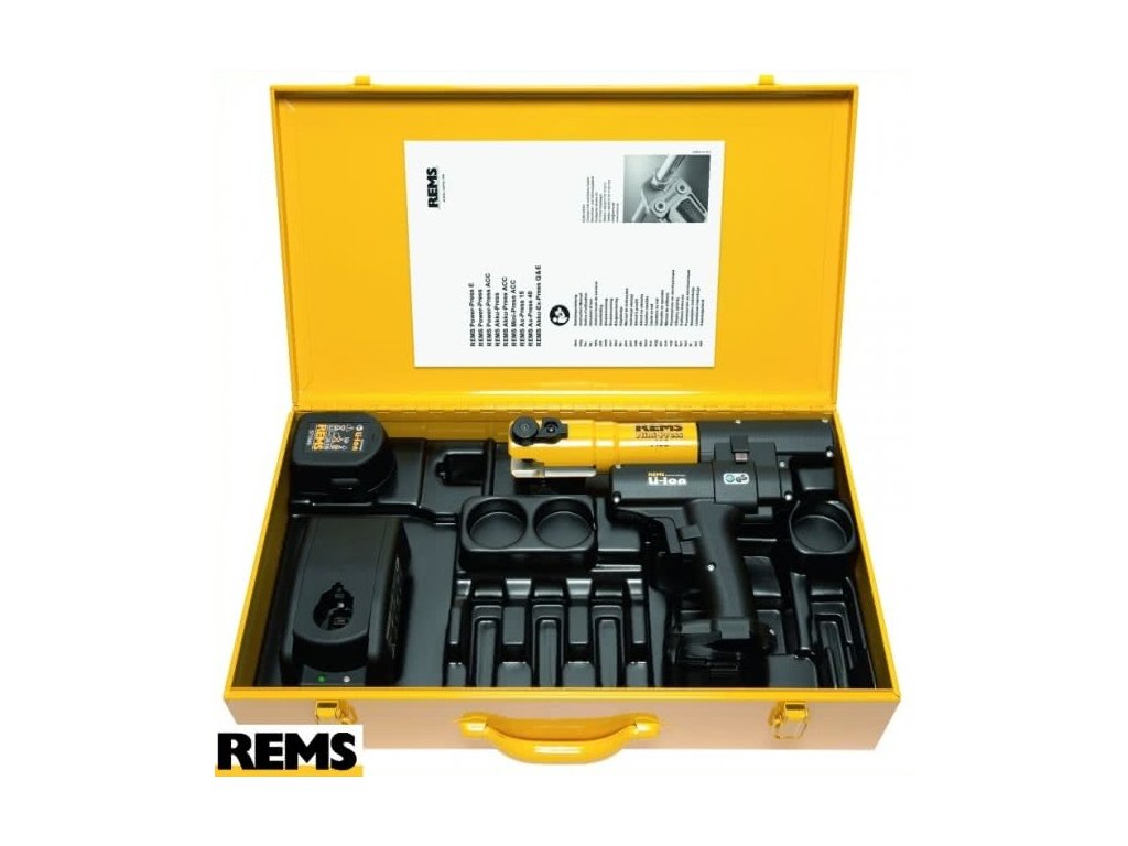 REMS Mini-Press 22 V ACC – univerzální do Ø 40 mm. Super lehký, super malý, super padnoucí do ruky, super rychlý. Lisování pod 4 s. S nuceným chodem. Automatické zajištění lisovacích kleští. Li-Ion 22 V technologie pro o 50 % více zalisování. Lisovaná spojení Ø 10 – 40 mm / Ø ⅜ – 1 ¼"