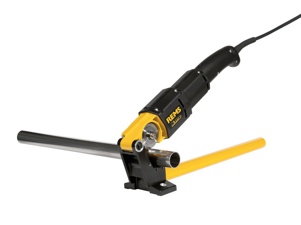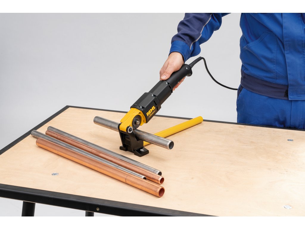 Mobilní, elektrický řezák trubek k rychlému, pravoúhlému dělení bez vnějšího otřepu. Snadno ovladatelný a lehký, jen 1,9 kg. Také k připevnění na pracovní stůl nebo do svěráku. Stabilní, proti krutu odolná hliníková konstrukce pro pravoúhlý řez. Snadné dělení trubek díky specielně vytvořenému řeznému kolečku. Poháněné řezné kolečko pro rychlé dělení. Sílu šetřící posuv prostřednictvím ergonomicky vytvořené páky posuvu. Řezné kolečko je díky omezení přestavovacího pohybu chráněno před kontaktem s opěrnými válečky.