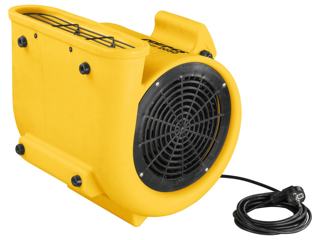 Radiální turboventilátor s dvěma stupni nastavení množství vzduchu, v stabilním plastovém plášti z rotačně tvářeného polyethylenu k zajištění dlouhé životnosti. Kompaktní konstrukce umožňující snadnou manipulaci, hmotnost pouze 10 kg, s jednofázovým kondenzátorovým motorem s nízkou hlučností, 230 V, 355/450 W, s praktickou rukojetí pro přenášení. Výstup vzduchu lze nastavit vodorovně, pod úhlem 45° nebo svisle prostřednictvím příslušných dosedacích ploch na plastovém plášti. Generované množství vzduchu ve dvou volitelných stupních 1 740/2 050 m³/h. Zvlášť vhodný k urychlení vysychání stavebních prvků, např. betonu, zdiva, omítky, potěrů.