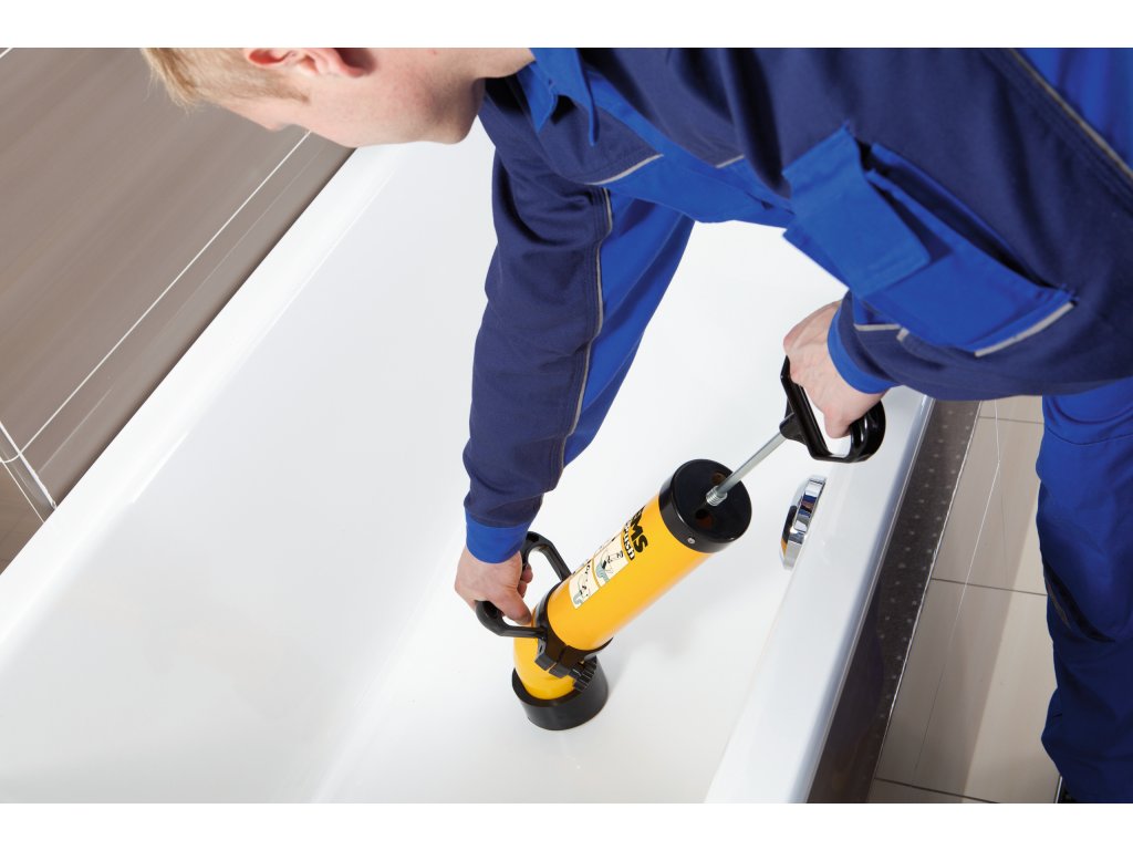 Vysoká přítlačná síla díky přední přestavitelné rukojeti. Optimální přizpůsobení požadavku na čištění díky 2 manžetám: krátké manžetě pro umyvadla a vany, dlouhé manžetě pro toaletu.