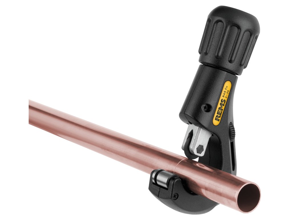 Řezák trubek na měděné trubky, s integrovaným odhrotovačem trubek. S řezným kolečkem. V blistrovém balení.