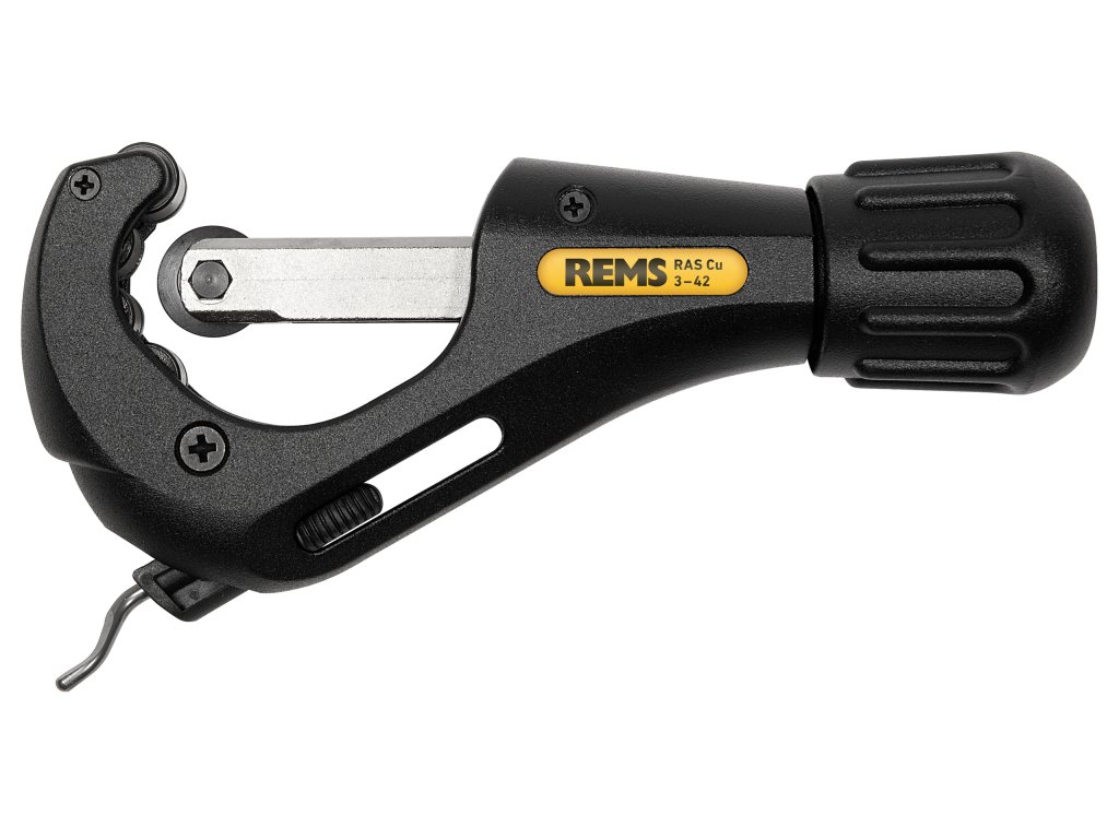 REMS RAS Cu. Řezák trubek na měděné trubky, s integrovaným odhrotovačem trubek. S řezným kolečkem. V blistrovém balení.