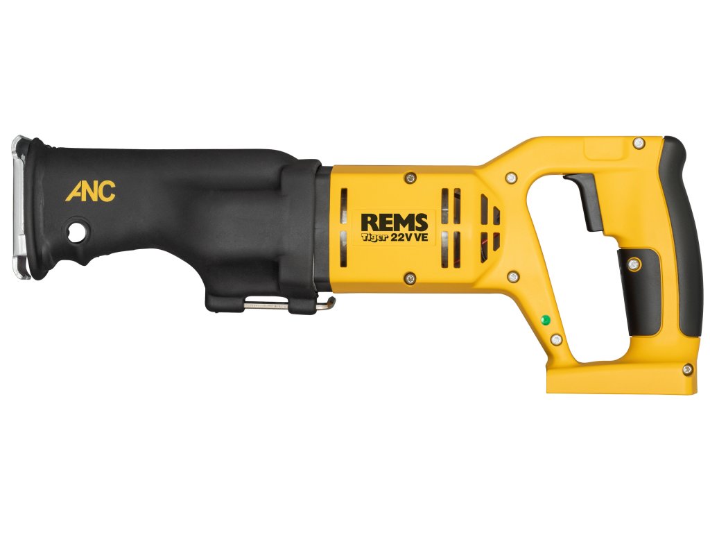 REMS Tiger 22 V VE – pila pro instalatéra. Řeže bez námahy, bleskurychle, kolmo. Mobilní, lehká, snadno ovladatelná. Akumulátor Li-Ion 22 V, 9,0 Ah, 194 Wh, pro ca. 80 odříznutí ocelové trubky 1" s vodícím držákem nebo ca. 140 odříznutí ocelové trubky 1" bez odícího držáku na jedno nabití akumulátoru*.