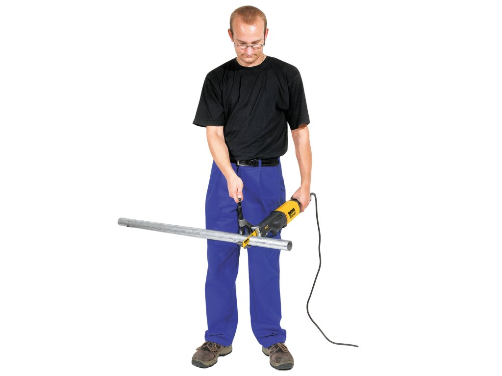 Kolmý řez díky vodicímu držáku a REMS speciálnímu pilovému listu. Předpoklad pro odborné opracovávání trubek při jejich instalaci.