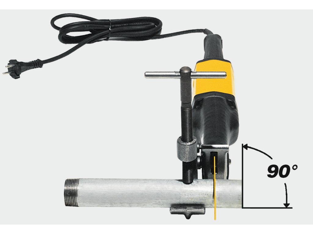 O 400 % větší síla při řezání pro sílu šetřící, super rychlé řezání trubek Ø ⅛ – 6" a jiných profilů, např. 2" ocelovou trubku jen za 8 s. Pro montáž a demontáž. Vodící držák s 5-násobným účinkem přenosu síly na páce dovoluje snadné, rychlé, kolmé řezání všude na místě, také na obzvláště úzkých místech. Upínací řetěz s pevnými řetězovými články, snadno upínatelný díky rychlouzávěru a závitovému vřetenu. Pro optimální posuv pily s vodícím držákem je výhodná přímá rukojet’ stroje.