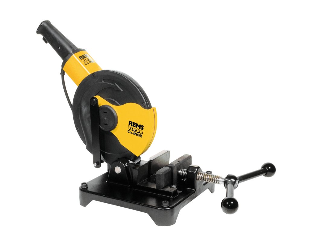 REMS Turbo Cu-INOX – prakticky bez otřepů, kolmo, rychle. Řezání téměř bez otřepů díky paralelnímu svěráku. Silný tah, např. Ø 22 mm jen za 4 s. Snadno přenosná.