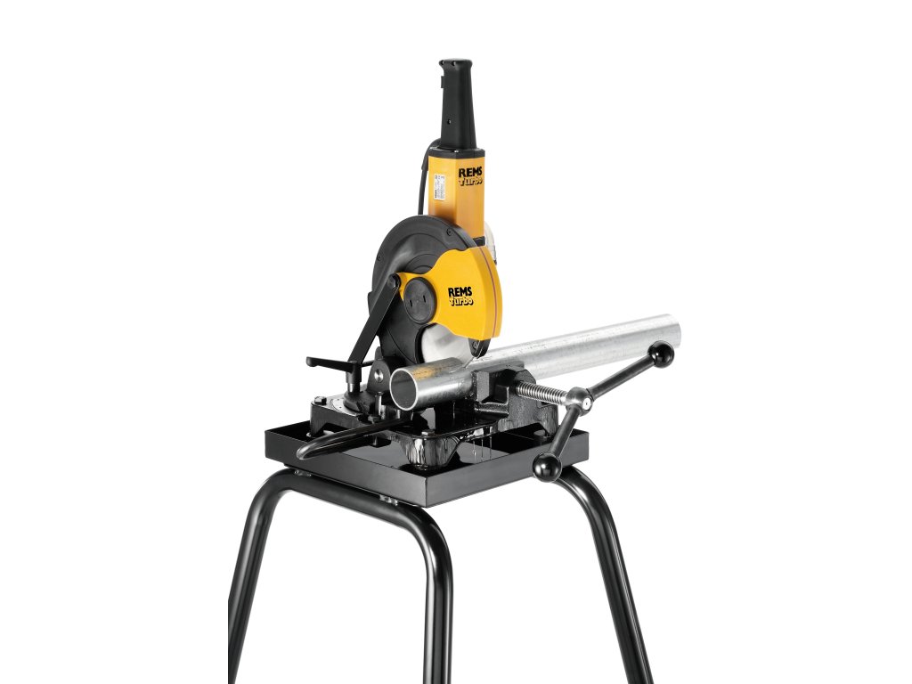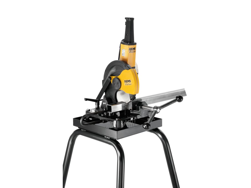 Univerzální kotoučová pila na kovy, s automatickým zařízením na mazání a chlazení. Na rovné řezání a řezání na pokos do 45°. Pro REMS pilový kotouč Ø 225 mm. Převody nevyžadující údržbu, osvědčený univerzální motor se silným tahem 230 V, 50–60 Hz, 1200 W, bezpečnostní spínač, ochranný kryt pilového kotouče, délkový doraz. Upínací nástavec na tenkostěnné trubky. Počet otáček 115 min-1. Klíč s očkem. Šestihranný klíč. Balení mazacího a chladicího oleje REMS Spezial. Bez pilového kotouče. Pro pracovní stůl, podstavec nebo pojízdný podstavec. V kartonu.